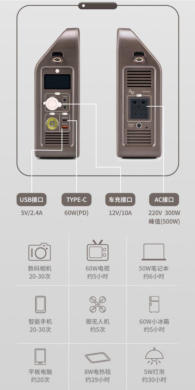 داستگاه دارای پنج خروجی مختلف است که این امکان را به استفاده کننده میدهد که به طور همزمان چند دستگاه را شارژ کرده و نیازهای مختلف خود را تأمین کنید.این ویژگی جزئ برجسته ترین ویژگی های این محصول است که بسیار کمک کننده در هر موقعیت است.خدمت شما عرض شود که محصول دارای یک عدد  چراغ LED 3W برای مواقع اضطراری است.