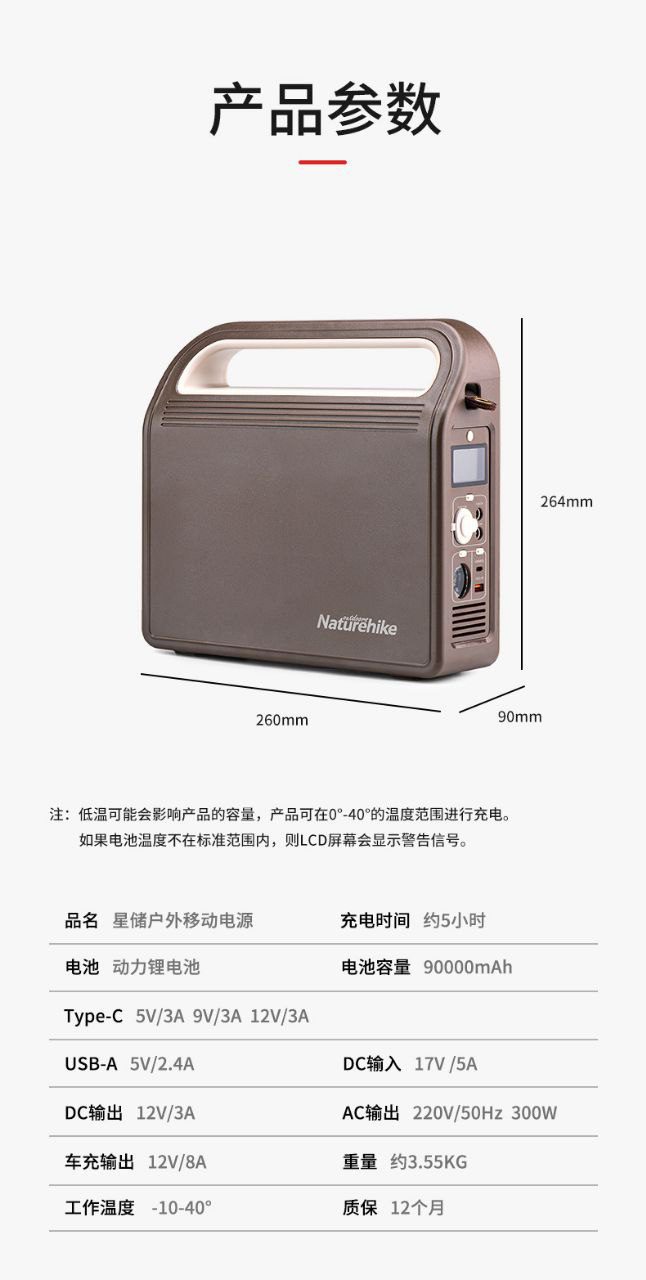 پاوربانک استیشن نیچرهایک مدل Nathurehike NH20ZM011 با ظرفیت ذخیره سازی 90000mAh به یکی از بهترین انتخاب‌ها برای تأمین نیازهای انرژی است.این دستگاه ویژگی های بسیار فرا تر از یک پاور بانک را دارد به گونه ای که علاوه بر ظرفیت بالا برای شارژ دستگاه‌های مختلف ویژگی های دیگری از جمله کیسه ذخیره سازی شارژر دارد.