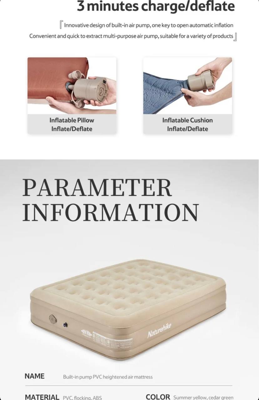 – اگر تشک دارای پمپ داخلی یکپارچه باشد، نیازی به پیدا کردن پمپ مجزا ندارید.