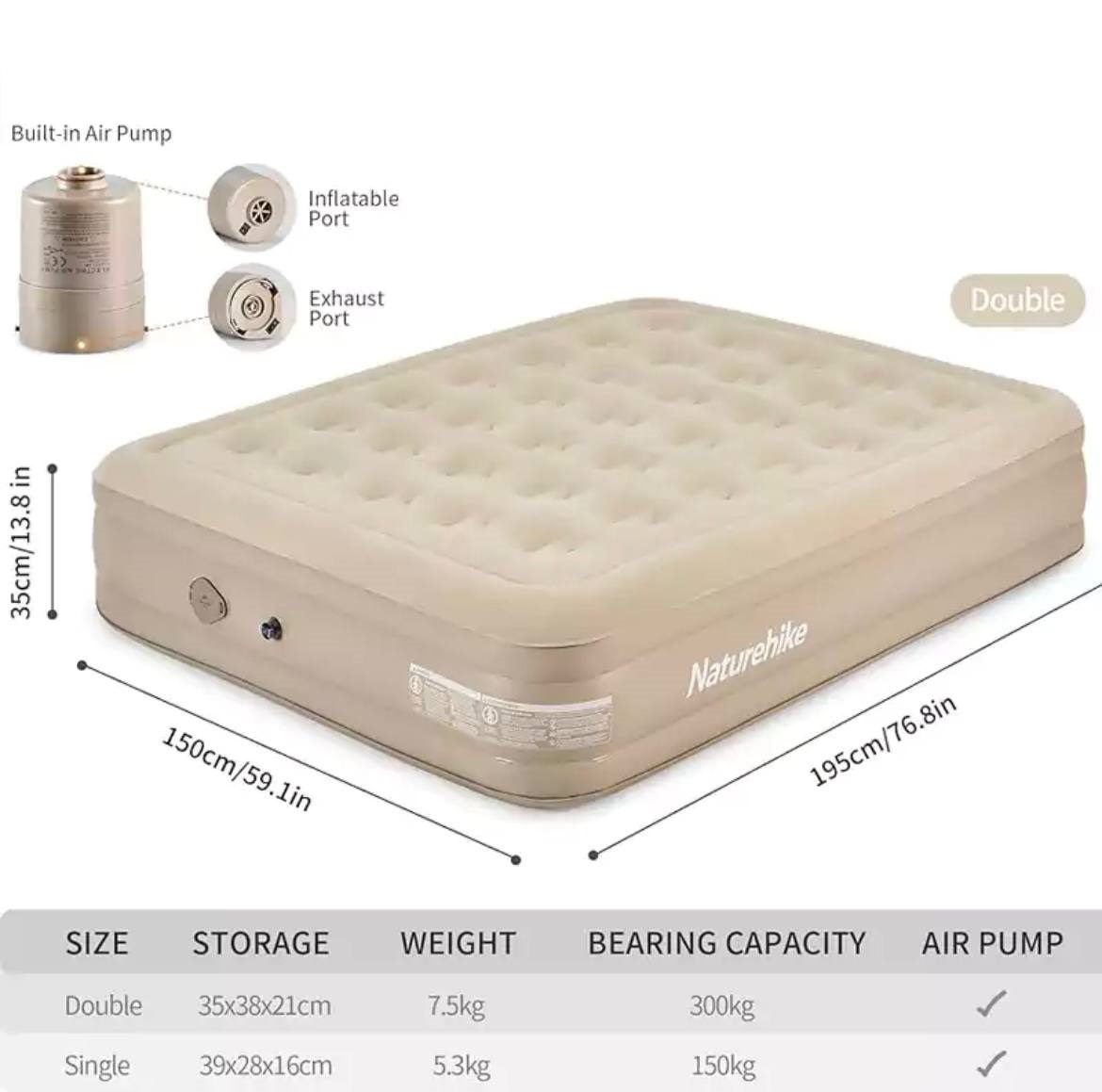 تشک بادی نیچرهایک دو نفره (Naturehike) مدل NH22FCD04 یک گزینه بسیار کاربردی و باکیفیت برای کمپینگ، طبیعتگردی و استفادههای مسافرتی است. این تشک طراحی ارگونومیک دارد و از مواد مقاوم و سبک ساخته شده که آن را به انتخابی مناسب برای حمل و استفاده در فضای باز تبدیل میکند. در ادامه به ویژگیهای اصلی این محصول اشاره میشود: