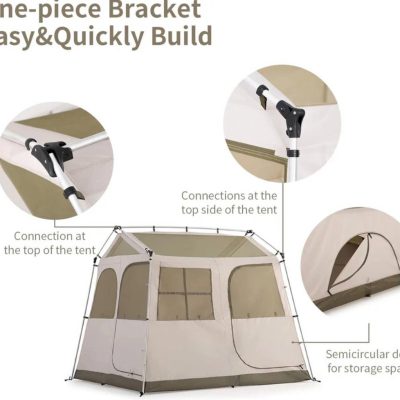 چادر دارای پنجره های تهویه و ورودی دوگانه برای جریان بهتر هوا در داخل چادر است. نسب ان نیز بسیار اسان است به گونه ای که به راحتی در مدت زمان کوتاهی قابل نصب می باشد. طراحی ارگونومیک این محصول باعث شده که برای انواع شرایط اب و هوایی به ویژه کمپینگ د رچها فصل مناسب باشد.