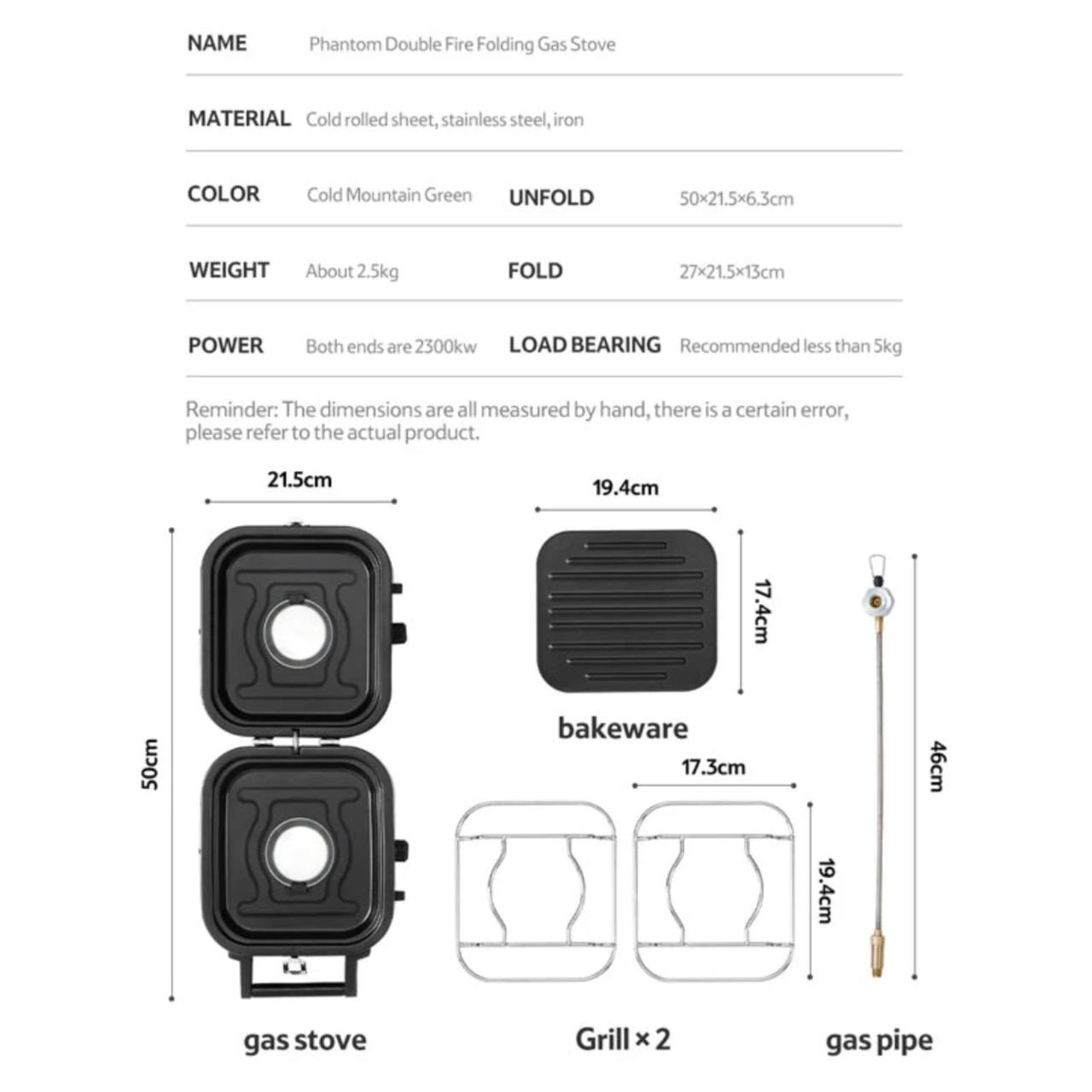 - ابعاد و وزن مناسب: این مدل با وزن تقریبی 2.5 کیلوگرم و ابعاد 27 × 21.5 × 13 سانتیمتر در حالت جمعشده، یکی از سبکترین و کمحجمترین اجاقهای دو شعلهی کمپینگ محسوب میشود. این ویژگی باعث میشود که بهراحتی در کولهپشتی یا صندوق خودرو جای بگیرد و حمل آن برای سفرهای طولانی خستهکننده نباشد.