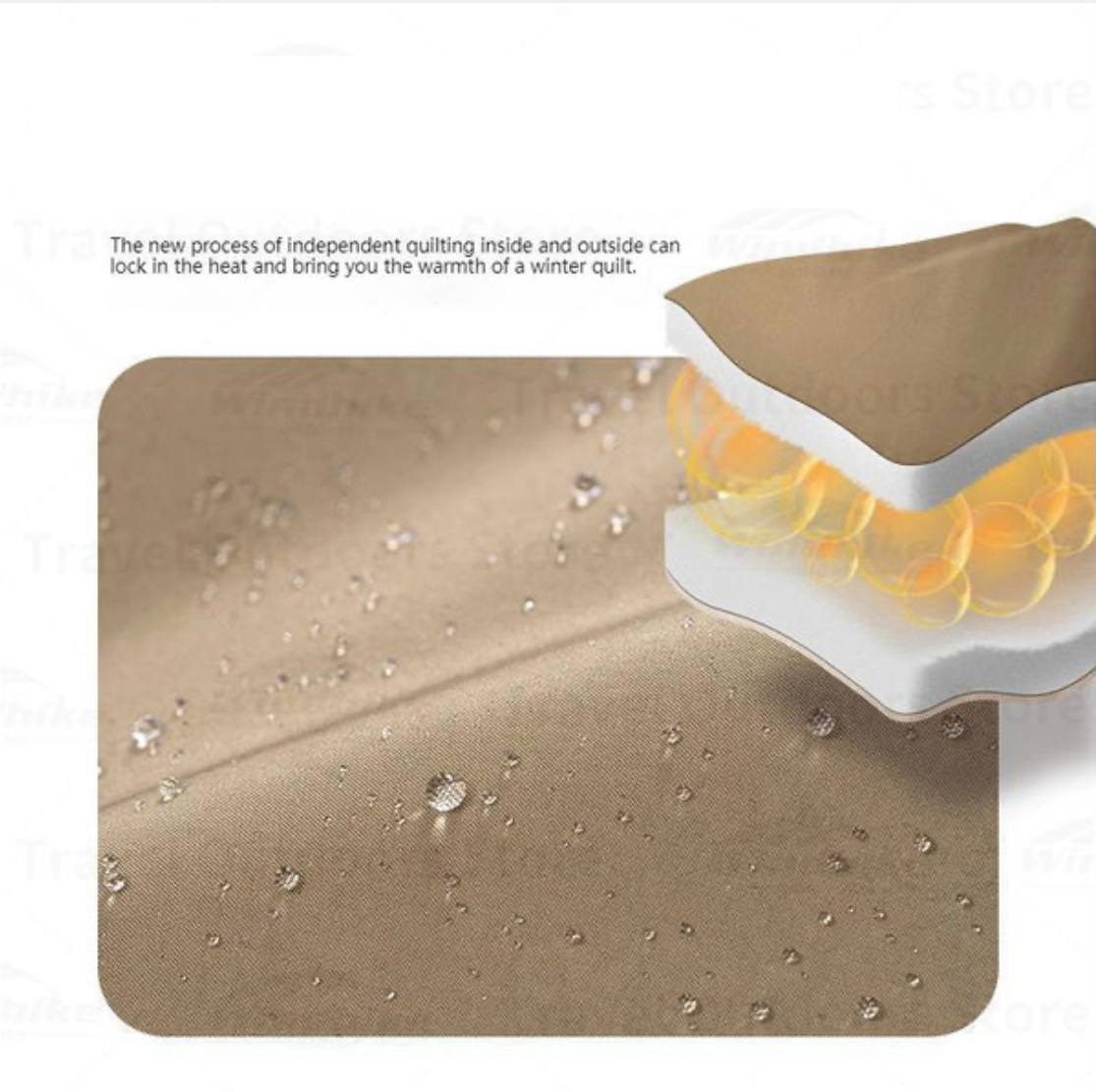 - جنس لایه بیرونی: پلیاستر 300T Pongee (ضدآب و مقاوم در برابر باد)