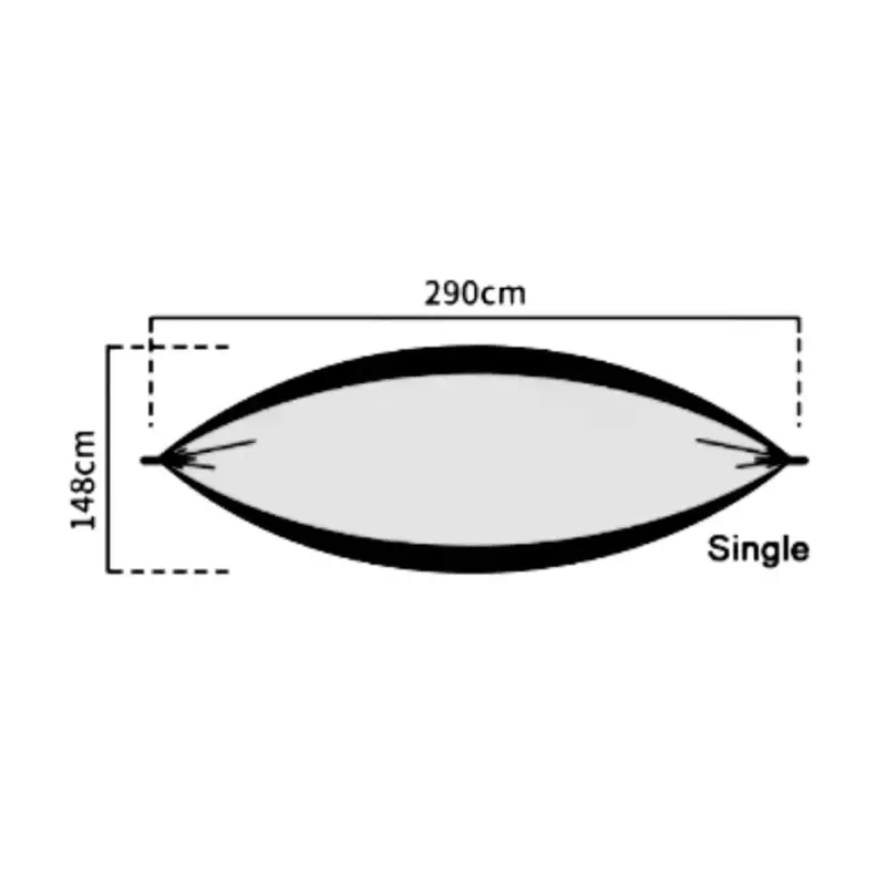 در نسخه تکنفره، ابعاد باز 290×148 سانتیمتر فضایی کاملاً مناسب برای درازکشیدن، چرت زدن یا خواب کامل فراهم میکند و برای افراد قدبلند نیز کاملاً استاندارد است. نسخه دونفره با ابعاد 290×180 سانتیمتر فضای بیشتری ارائه میدهد و دو نفر میتوانند بدون فشار یا محدودیت کنار هم استراحت کنند. این ابعاد دقیقاً مطابق Ergonomic Design طراحی شده تا بیشترین راحتی را بدون ایجاد کشش اضافی یا افتادگی وسط ننو فراهم کند.