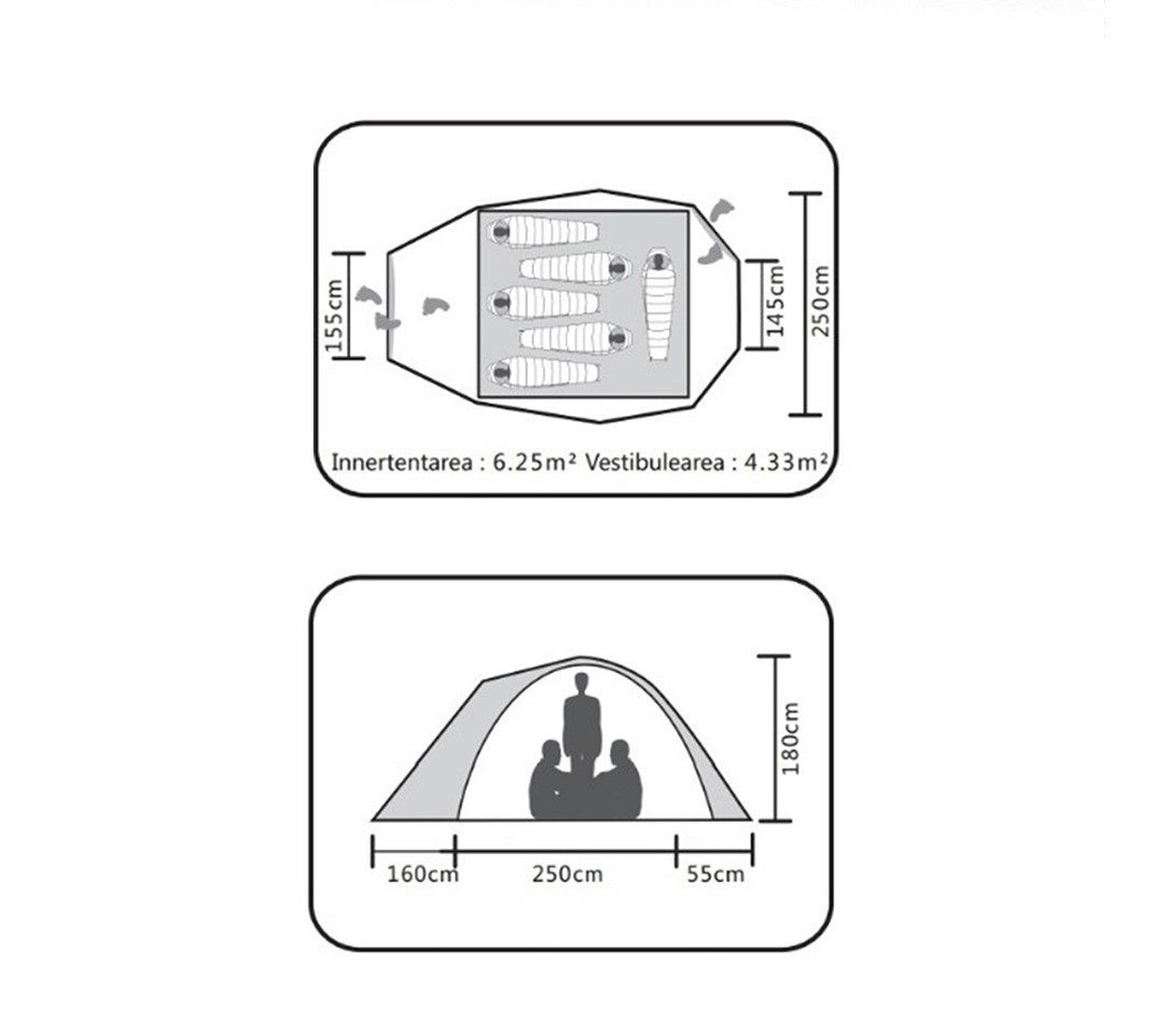 چادر داخلی: پارچه تنفسی 68 بعدي + پارچه مشبک 3000 میلی متر