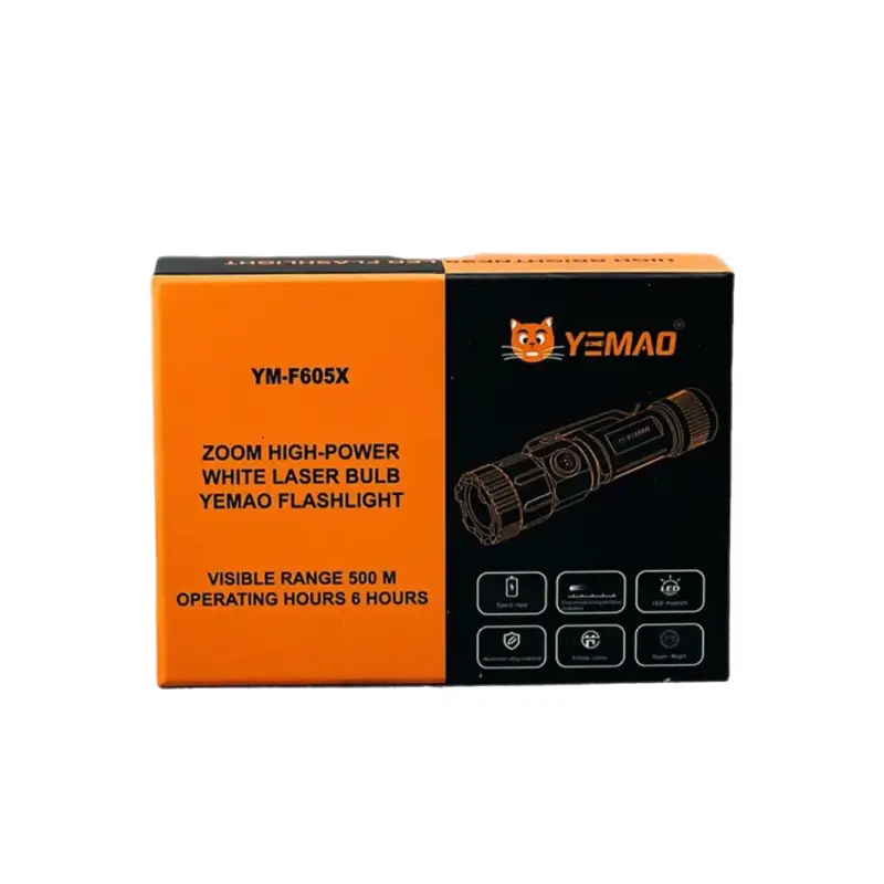 چراغ قوه YM-F605X دارای قابلیت زوم تلسکوپی است که امکان تنظیم پرتو نور از حالت نقطهای متمرکز برای دیدن جزئیات دور تا حالت پخششده گسترده برای روشن کردن محیط فراهم میکند. این قابلیت به شما اجازه میدهد نور را متناسب با محیط و هدف خود تنظیم کنید و کنترل کامل روی پرتو نور داشته باشید.