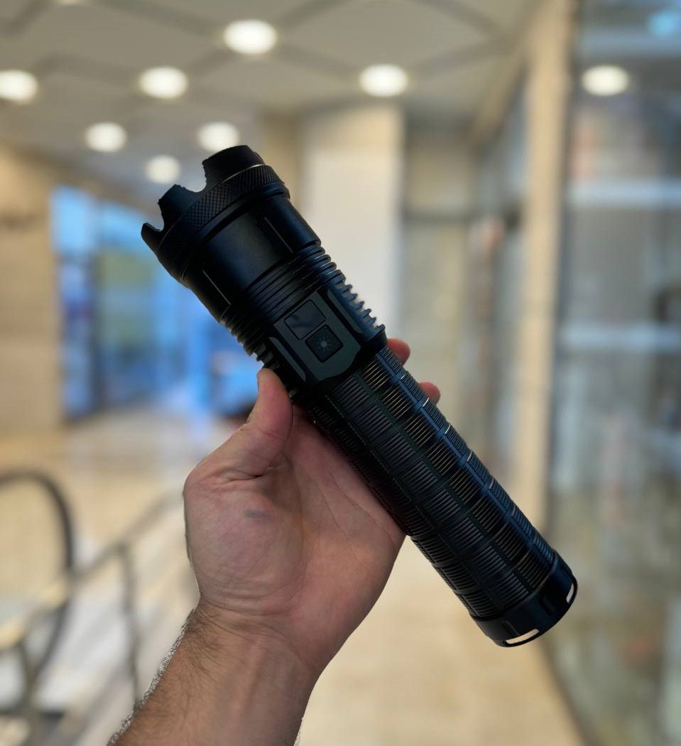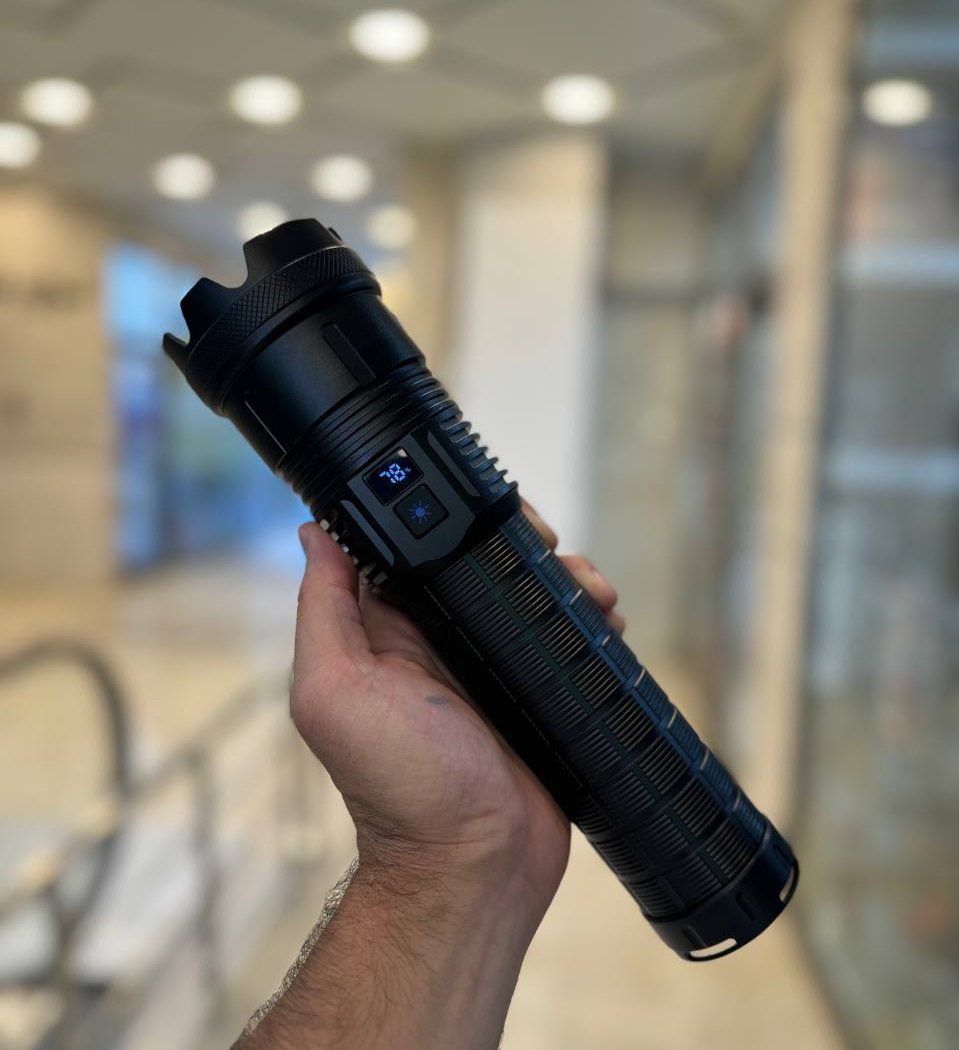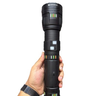خدمت شما عرض شود که چراغ قوه دارای یک عدد باتری 20000 میلی امپری قابل شارژ است که با کابل شارژ تایپ سی شارژ میشود. اقلام همراه محصول در کیف الومینیومی ان علاوه بر چراغ قوه بند دستی، داپتور 5 ولت 2 میلی آمپر، کابل شارژ USB-C و باتری دستگاه نیز می باشد.