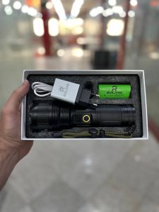 محصول یک چراغ قوه شارزی است که با کابل شارز تایپ سی قابل شارز است.باتری ان یک پک سه تایی است که ظرفیت هر کدام از این باتری ها 7800 میلی امپر است.از ویژگی های چشم گیر این محصول بسته بندی ان ان است که شامل یک جعبه با اقلام همراه ان مثل کابل شارژ تایپ سی،آداپتور 5 ولت 1 میلی آمپر،پک سه تایی باتری 7800 میلی امپریو بند دستی است.ناگفته نماند که بر روی بدنه چراغ قوه نشانگر وضعیت باتری تعبیه شده است.